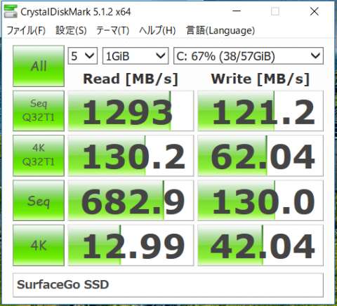 ReadはPCIe接続だけある速度なのですが、WriteはeMMCよりは速いという程度でSATA接続よりも
