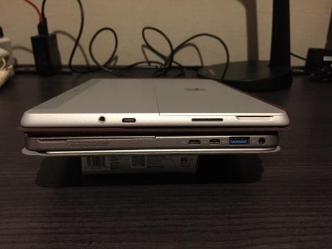 厚さはType-AコネクタのあるTransBookMini102HAの方が若干薄いが持った感じは同等です。