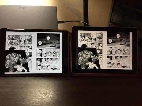 電子書籍を表示すると縦横比の違いでほぼ同サイズでの表示になります。