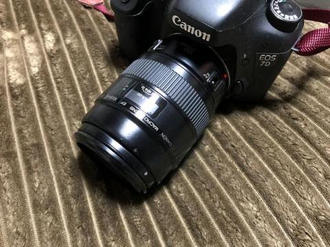 EOS 7Dに装着した状態です。こうやって見る限りはそれほど状態の悪さは目立たないかも知れません。AF切り替えスイッチがないことは一目見れば判りますが。