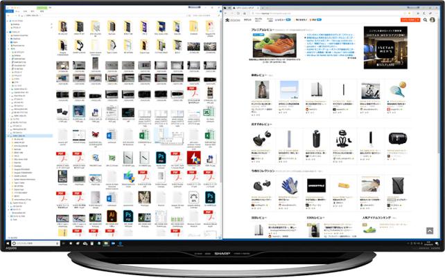 画面の2分割で、テレビとPCを再生したり、テレビと録画コンテンツを表示させることもできます。