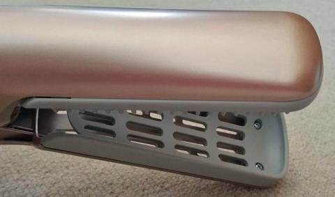毛束を挟み、毛束の外側にも温風をあて、テンションをかけながらしっかりくせを伸ばす。