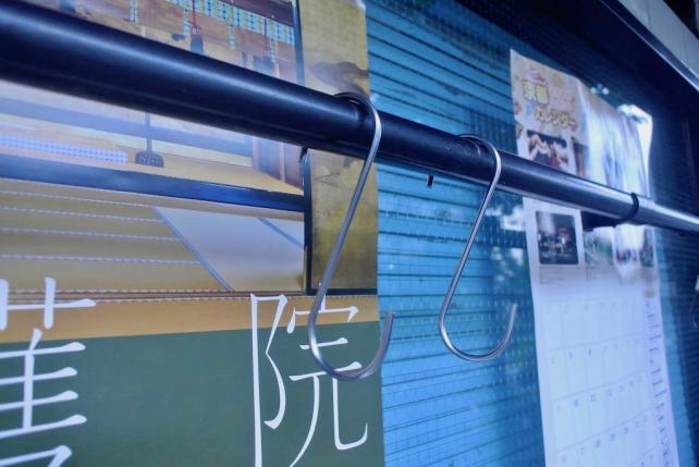 曲げやすい金属のフックは、盗難の恐れもあります。