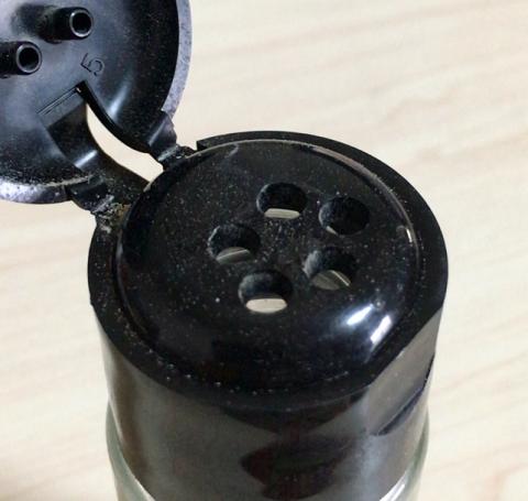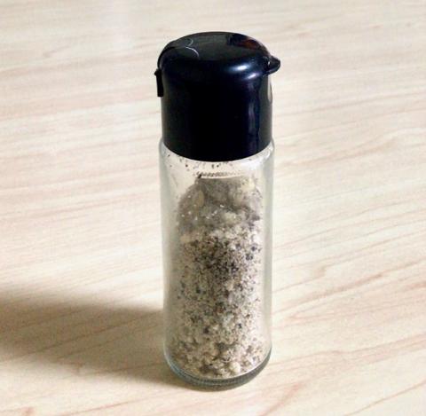 最初に、ペッパー用のボトルに塩胡椒を1/3くらい入れます。
