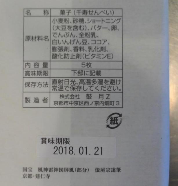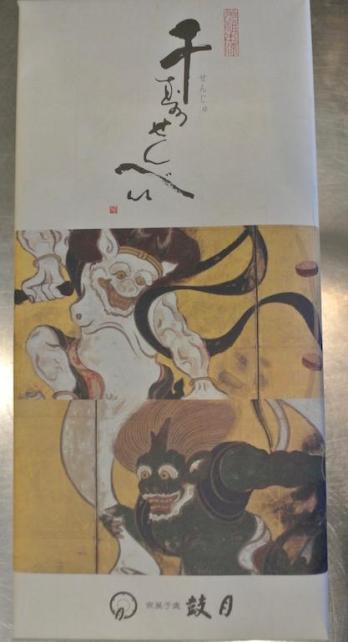 去年の秋に京都国立博物館で国宝特別展覧会が開かれた時に、琳派の風神雷神図屏風を表包装にしつらえた千寿せんべいをいただいておりました