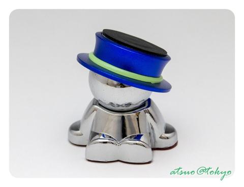 内容物は、マグネットスタンド人形本体の他、マグネット帽子、スチールプレート(スマホ貼付用)x 2、アルコールバッド(取付位置洗浄用)、両面テープ x 2(一つは本体に貼付済)です。