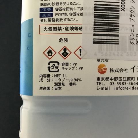 ちなみに成分はエタノール94%、残りは潤滑剤と香料という物です。