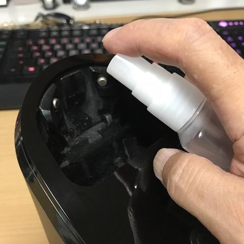使用方法は空になった今までのカートリッジに給油するだけなので、ここは付属のスプレーボトルを使用して洗浄機を洗ってみることにしました。とりあえずはボトルに洗浄液を給油して準備OK.