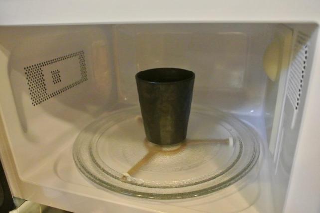 濡れた布巾で拭き上げるお掃除の後、このガラスターンテーブルをセットする時に