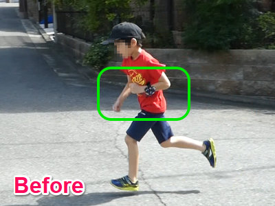 ・子供がゼクーが落ちるのを気にして左右の腕の振りが変わってしまう、体が縮こまってしまう。