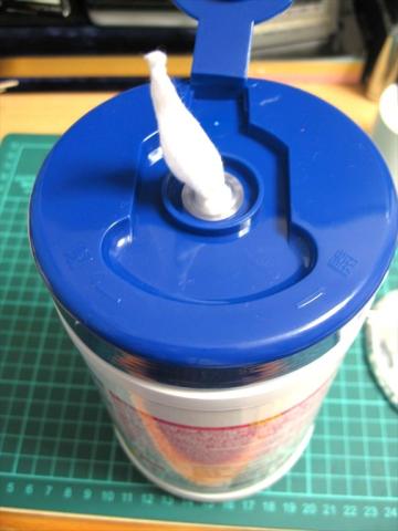 一応完了ですが、ブルーの蓋部分と白い本体の間に隙間がないことを確認 開いているとアルコールが飛散します。