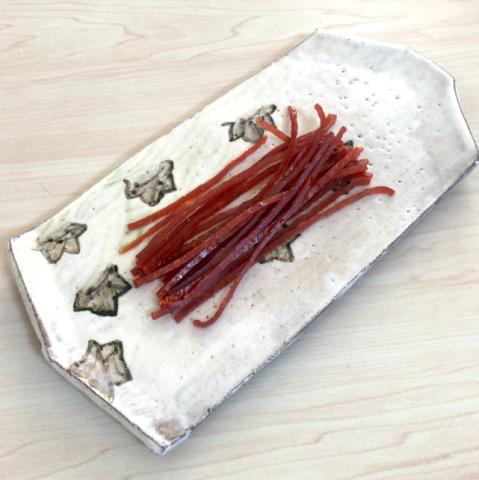 鮭とばになれなかった小さな欠片を集めてて作った、スティック状のおつまみです。