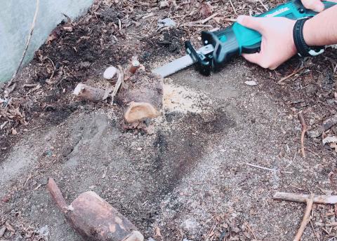 バッテリー式のレシプロソーを使って、雑木をカットしてみました