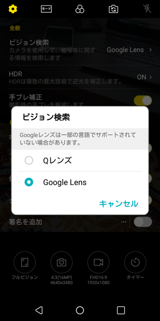 LG標準のQレンズもありますが、Google Lensを割り当てることも可能です。