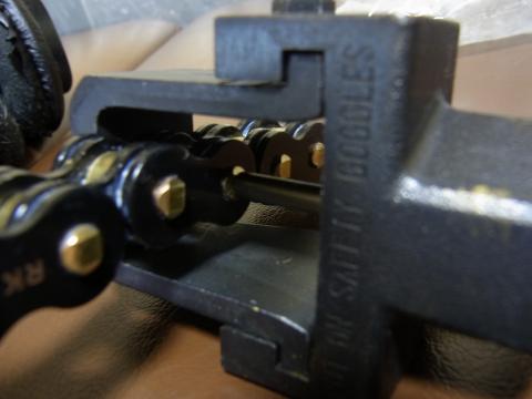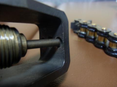 ピン抜き センター穴にチェーンの抜きたいピンをセット
