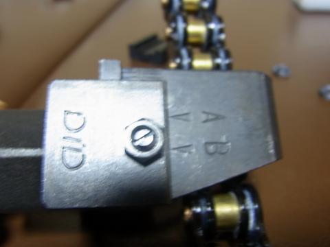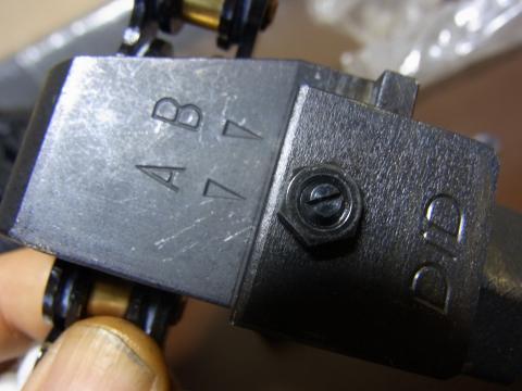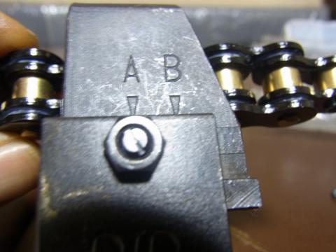 ピン抜き用側でBの位置を確認3つ穴の右をカシメることができる仕様