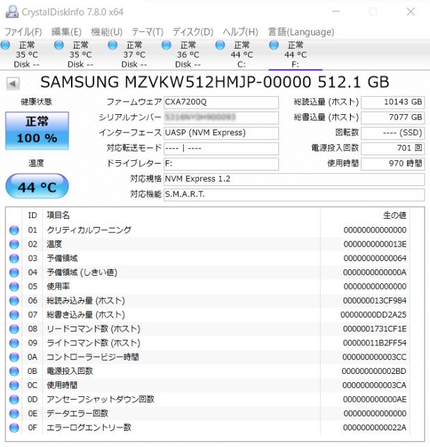 続いて、Samsung SM961 512GBモデルです。