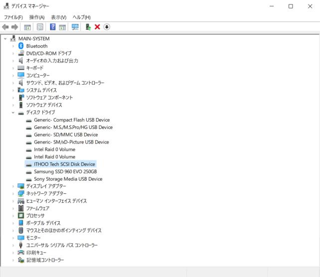 デバイスマネージャーでは、ITHOO Tech SCSI Disk Deviceと表示されます。
