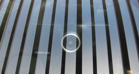 ルームミラー裏に設置するとこんな漢字ですが,反射しているので,よくわからない状況です.