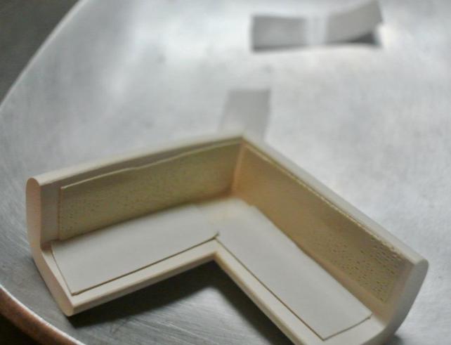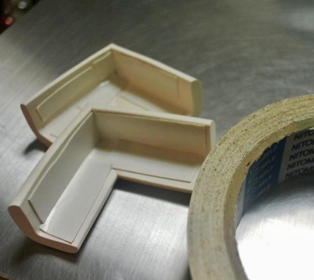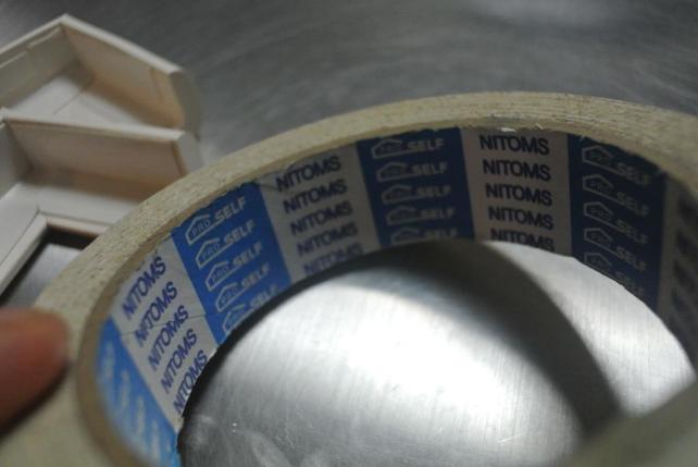 下は剥離紙を剥がす前 垂直面は剥離紙を剥がした後 布製テープであることがおわかり戴けます