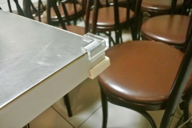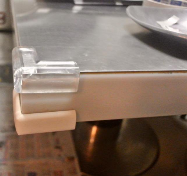 安全コーナークッションをテーブルに固定してます。