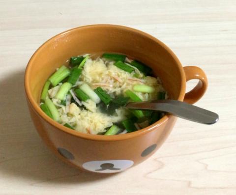 これは、我が家の「麺つゆ」を使った卵スープ。