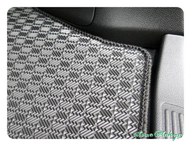 裏面のフェルト素材は、装着時のズレ防止の為のアクリル系樹脂の特殊加工がされているそうです。また吸音性にも優れているとの事でロードノイズの低減も期待できそうです(結局、吸音性の違いはあまり分かりませんでしたが(^^;)。