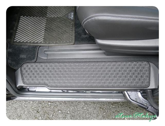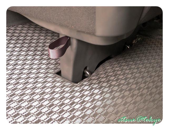 そして跳ね上げると気になるのが運転席迄続くフロアカーペットマットがよく見え、床の違いがちょっと気になりますが、基本的にシートを跳ね上げる時は荷物を沢山積む時なのでこの点は気にしない事にしました。