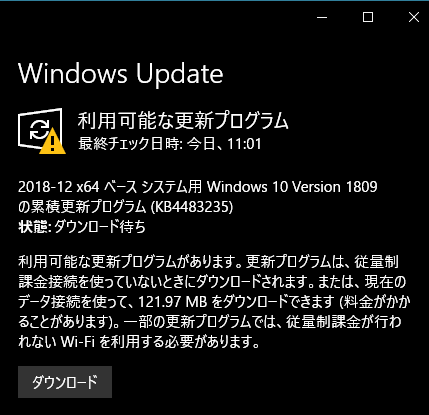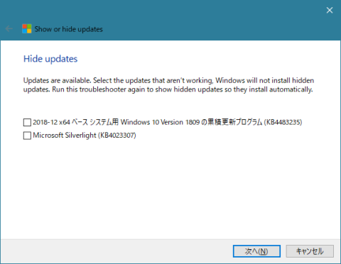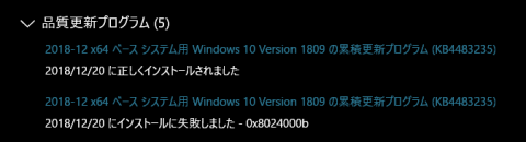 Windows10 1809の場合は2019/05の定例Windows Update KB4494441で緩和策の対応が行われている。