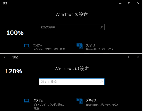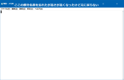 でもね、「設定」のウインドウでは出ないんだけど、メモ帳とか古いソフトの「アプリケーションバー」の高さが高くなったり、「閉じる」ボタンとかバカでかくなるんですよ、ハッキリ言って邪魔なんです。