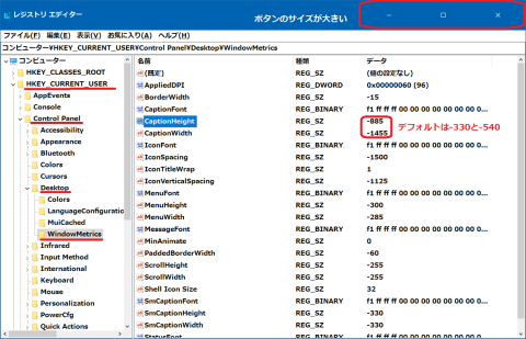 1. レジストエディターで「閉じる」ボタン等の大きさを元に戻す