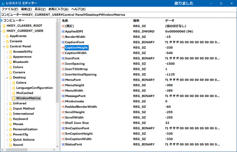 2. 「ReMetrics」というフリーソフトで元の値に戻す