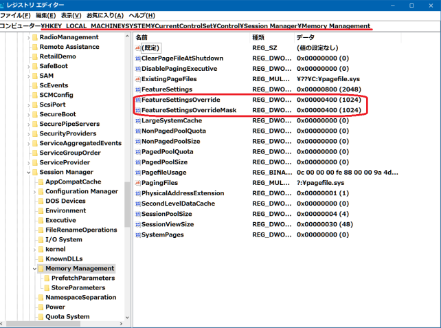 Windows10ではCVE-2018-3639の設定がデフォルトでは無効になっている、レジストリ設定で有効、無効を設定する。