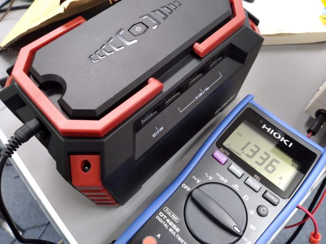 1.35Aくらいなので25W程度です。テスタが日置のいいやつですね。