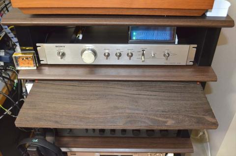 オーディオラックを組み立てて使ってみたら、一寸した物を置く場所がないのです 最初から判っていたわけですが 棚2本を解体して、オーディオラックだけ増やしたのですが、どうにもスペースが足りない そこで1段目の棚下に収納式の板を設置しました。