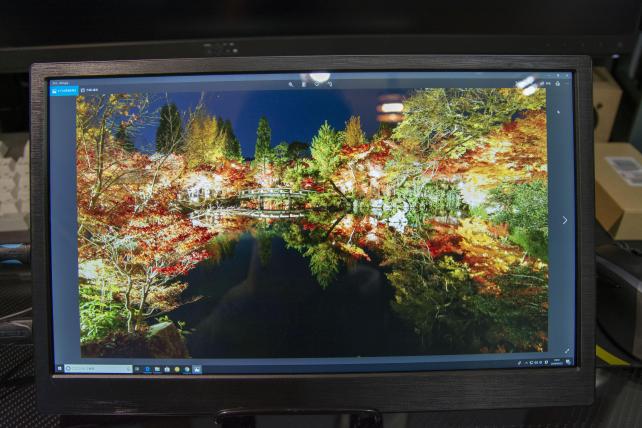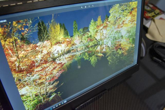 正面から見ると、発色も良く、グレアパネルのコントラストの良さもあって、2万円を切る液晶とは思えないレベル。