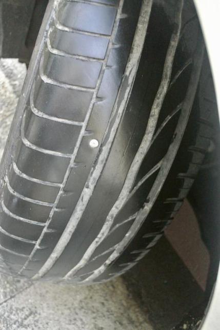 ブリジストンのタイヤ館で タイヤを外さない応急パンク修理(外からピンを打ち込む)の