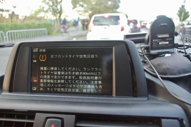 そのスタンドではランフラットタイヤの修理を断られたので、とりあえず空気圧を確保して200キロの帰路を走ります その間に再び警告灯が点くことは無かったのが幸いでした