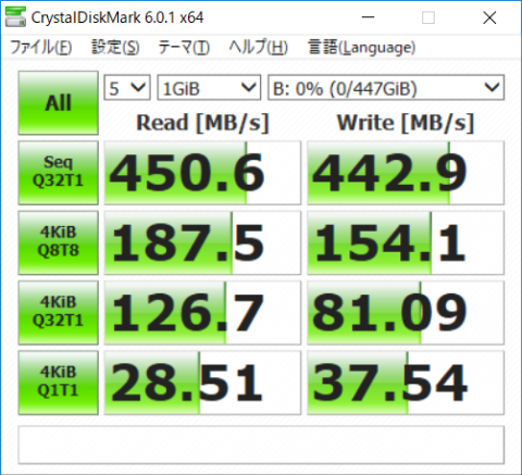 うおっ!?USB接続でもこんな速度出るんだ・・・
