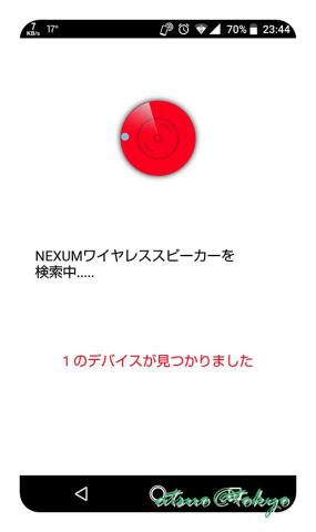 ワイヤレススピーカー検索画面が表示され、「xのデバイスが見つかりました」と表示され次の画面に切り替わります。