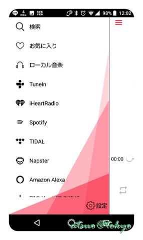 [デバイスリスト]の文字の左にある「<」をタップすると利用出来る音楽&音楽サービスリストが表示されます。
