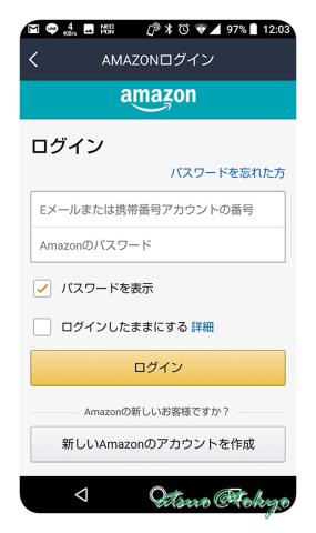 Amazonの IDとパスワードを入力し「ログイン」をタップします。