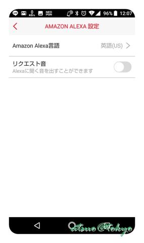 先の音楽サービスリストから「Amazon Alexa」をタップすると 2回目以降は下の画面になります。
