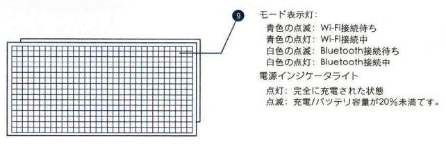 そして点灯していないと外からは見えませんが、スピーカー面右上にステータスランプがあり以下の様に表示されます。