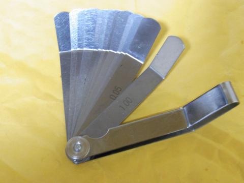 タペット調整、バルブクリアランス、ポイントギャップ、シム調整等あらゆる隙間を計測する先端に角度をつけたシックネスゲージです。