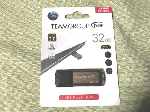 今まで使ったことがない製品の中で、USB 3.x対応かつ32GBで千円未満というのものの中から選んだのが、このTeam製のC155という製品です。