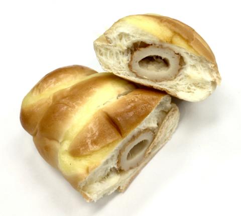 このパンの中には、「ちくわ」がまるまる一本入っています。