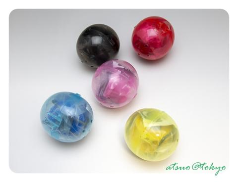 「RED」「PINK」「BLUE」「BLACK」「YELLOW」の 5色で、中の色に合わせたカプセルに入っています。
