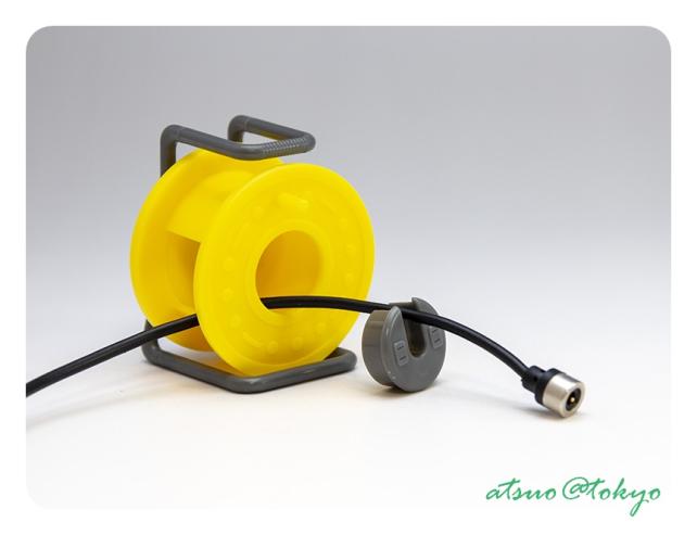 特に硬めのケーブルだと苦労します。この辺は本品でなくとも普通のコードリールでもそうなのでしょうが、ケーブルが硬いと真ん中のフタもすぐに外れてしまいます。