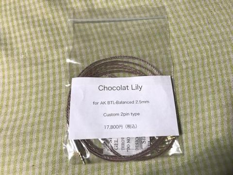 そんな中、会場に行くまでは全く買うつもりがなかったものの、直前に急にピンと来て買ったイヤフォンリケーブルがこちら、WAGNUS. Chocolat Lily(読みは「ショコラ・リリィ」)です。端子形状は2.5mm4極バランス - CIEM 2pinというものです。